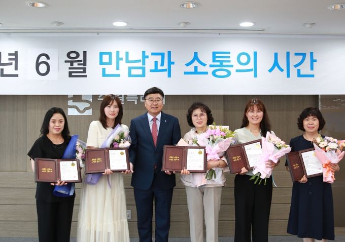 ‘장안구 6월 만남과 소통의 시간’에 열린 시상식에서 표창을 받은 이들은 △꼬부리어린이집 이소진 교사 △꾸러기세상어린이집 남궁정화 조리원 △솔샘어린이집 김경희 원장 △옹달샘어린이집 윤여순 조리원 △하랑어린이집 김혜정 조리원이다.