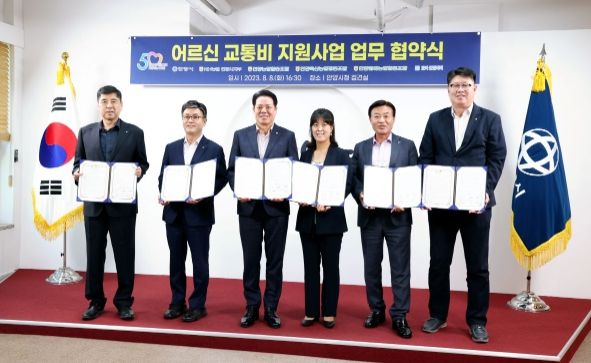 이날 협약식에 참석한 최대호 안양시장 및 5개 기관 대표는 안양시 어르신 교통비 지원사업의 원활한 추진을 위해 역할 분담 및 상호 협력 사항에 서명했다.