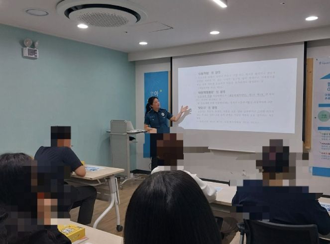 지난 26일 아동보호전문기관 회의실에서 진행된 교육에서는 안양만안경찰서 소속 엄혜경 아동학대전담경찰관이 대상자에게 ‘아동학대사건 사법처리 절차’와 ‘민법 제915조 징계권 폐지’에 대한 내용으로 강의를 진행했다.