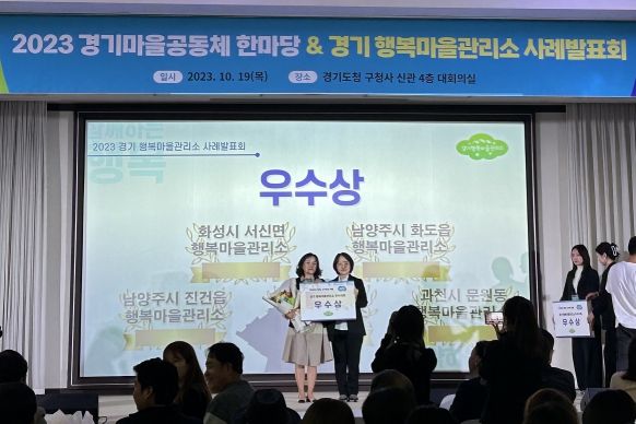 [경기탑뉴스=박봉석 기자] 화성시가 지난 19일 경기도 주최로 경기도청 구청사에서 열린 ‘2023년 경기행복마을관리소 사례발표회’에서 서신면과 병점1동 행복마을관리소가 우수사례로 선정됐다.