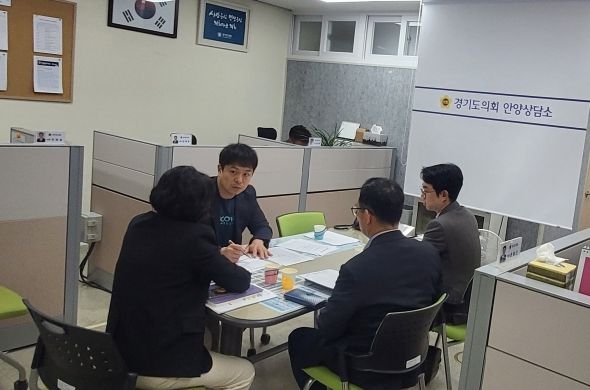 [경기탑뉴스=박봉석 기자] 경기도의회 도시환경위원회 유영일 위원장(국민의힘, 안양5)은 31일 경기도의회 안양상담소에서 지역구 특별조정교부금 신청사업 관련으로 예산법무과 관계자와 면담을 가졌다.