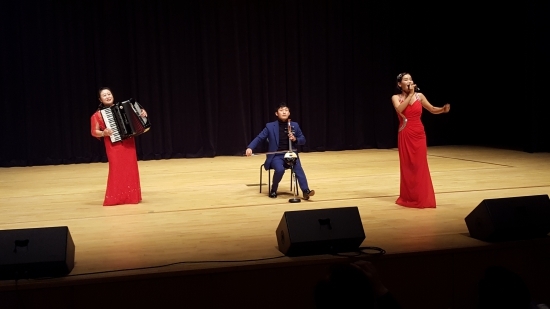 이어진 무대는 ‘ 임진강’ 찔레꽃. 섬마을 선생님. 홍도야 울지마라. 소양강처녀을 열창 하였고 아코디언 연주로 우리에게 귀익은 베사메무쵸을 연주 할때에는 관객들 모두의 기립 박수를 받았다. 이날 공연 중 홍일점 유일한 남성 예술인 박성진 예술인의 해금연주로 옹헤야를 연주 할때에는 수많은 여성 관객들의 박수와 호응을 얻기도 하였다.