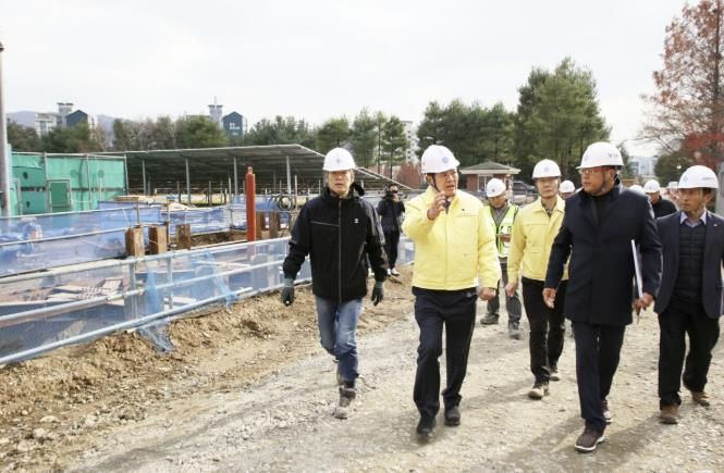 [경기탑뉴스=박봉석 기자] 안양시는 지난 26일 최대호 안양시장이 의왕시 청계동 소재 청계통합정수장 고도정수처리시설 설치공사 현장을 방문해 막바지 공사 진행 상황을 점검하고 관계자들을 격려했다고 27일 밝혔다.