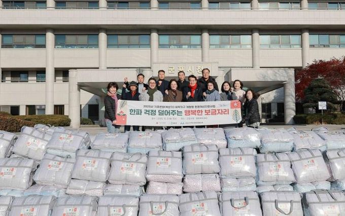 [경기탑뉴스=박봉석 기자] 군포시와 군포시지역사회보장협의체는 사회복지공동모금회와 함께 ‘2025년 기후변화(혹한기) 취약가정 계절별 환경개선 지원사업’을 추진하여 본격적인 추위가 시작되기 전에 취약한 가구의 겨울나기를 돕기 위해 저소득 취약가구 250가구에게 겨울 이불세트를 전달 했다.