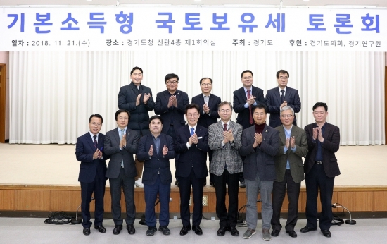 경기도는 21일 오후 도청 제1회의실에서 이재명 경기도지사와 정대운 경기도의회 기획재정위원회 위원장, 이한주 경기연구원 원장 등 100여명이 함께한 가운데 ‘기본소득형 국토보유세’ 토론회를 열었다. 앞서 도는 지난 달 8일 국회에서 같은 주제를 놓고 토론회를 개최한 바 있다.
