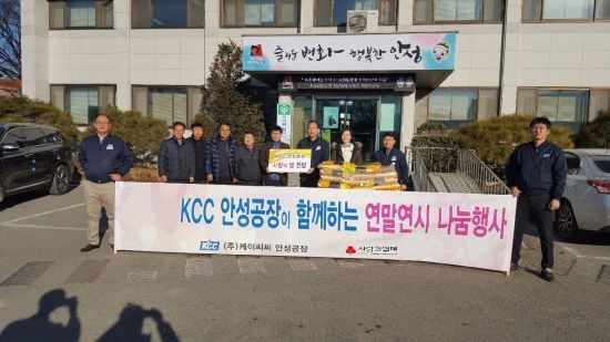 KCC안성공장 관계자는 “우리 주위를 둘러보면 도움의 손길이 필요한 이웃이 많다며, 어려운 이웃에게 작은 희망이라도 드리고 싶다. 앞으로도 직원들의 작은 정성을 모아 매년 지속적으로 행사를 추진해갈 예정이라고 전했다.”