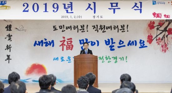 이 지사는 3일 소방재난본부에서 열린 ‘2019년 시무식’에서 “서면으로 작성한 신년사를 읽는 대신 우리가 꼭 해야 할 과제를 한번 짚어보자”라고 제안한 뒤, 민선7기 3대 핵심가치인 ‘공정, 평화, 복지’를 차례로 제시하며 ‘경제살리기’와의 연관성을 조목조목 설명했다.