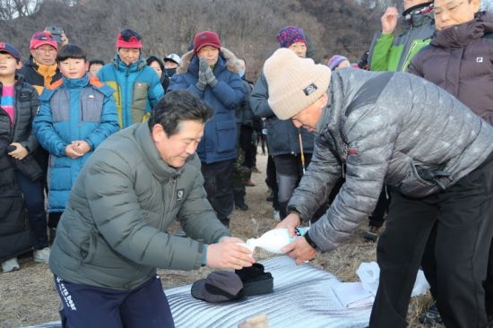 김 군수는 일출시간에 맞춰 시산재를 지내고 지역주민들과 함께 새해소원을 빌며 인사하는 시간을 가졌다.