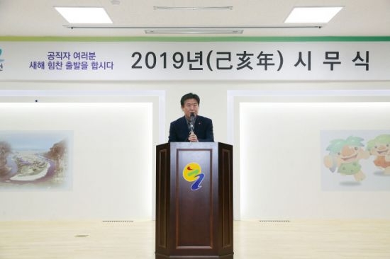 이어 김 군수는 시무식 신년사를 연천군의 장기발전방안 조속한 마련, 연천을 하나로 만들기 위한 교통인프라 구축, 천혜의 자연환경을 활용한 관광자원 개발, 대규모 민간 투자사업 유치와 선택과 집중을 통한 정책사업 추진 등 10개의 군정 시행 방안을 제시하였다.