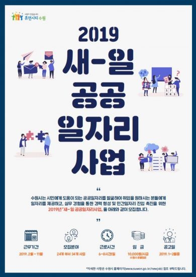 수원시 일자리정책관 관계자는 “‘새-일 공공일자리 사업’은 새로운 일자리를 창출하고, 지역경제를 활성화하기 위한 것”이라며 “많은 시민의 참여 바란다”고 말했다.../박봉석기자