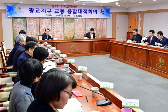 수원시는 10일 시청 상황실에서 첫 정책조정회의를 열고, ‘광교지구 교통 혼잡 최소화 대책’을 논의했다.