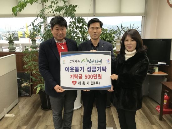 한편, 세용기전(주)은 매년 관내 어려운 이웃들을 위해 이웃돕기 성금·현물을 기탁하며 사랑의 나눔 문화를 실천하고 있는 기업이며 기탁금은 기탁자의 뜻에 따라 초월읍 관내 저소득계층에 생계비 등으로 지원될 예정이다.../신시열기자