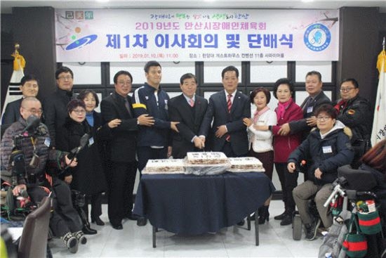 안산시 장애인체육회(회장 윤화섭 안산시장)는 지난 10일 한양대 게스트하우스 컨벤션 11층에서 2019년 이사회 및 단배식을 개최했다.