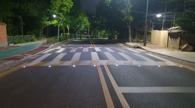 LED 활주로형 표지병은 비행기 활주로처럼 횡단보도 양옆을 따라 일정한 간격으로 설치하는 LED조명시설로 야간 운전자가 횡단보도를 쉽게 인식할 수 있어 심야에 신호가 없는 횡단보도를 건너는 보행자 안전 확보에 효과적이다.