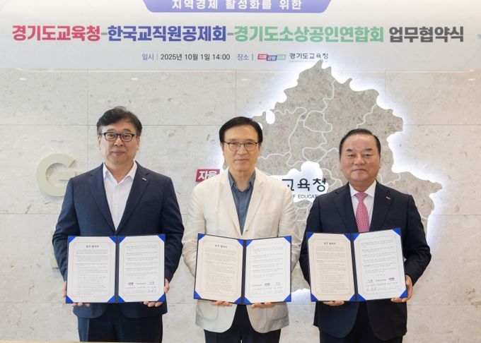 [경기탑뉴스=박봉석 기자] 경기도교육청이 1일 남부청사에서 경기도소상공인연합회, 한국교직원공제회와 ‘지역경제 활성화를 위한 상생 업무협약’을 체결했다.