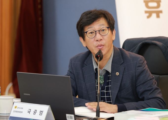[경기탑뉴스=박봉석 기자] 경기도의회 안전행정위원회 국중범 의원(더불어민주당, 성남4)은 7일 시흥소방서에서 실시된 2025년 행정사무감사에서 소방대원의 근무복 세탁 지원과 터널 화재 대응체계 강화 필요성을 집중적으로 제기했다.