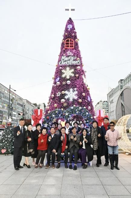 이후에 시작된 점등식은 내빈 소개에 이어 축사, 성탄트리 점등의 순으로 진행됐다. 참석자들은 아기 예수님의 가르침과 사랑의 손길을 되새기며 다가오는 성탄을 축하하고, 시민에게 따뜻한 온기가 전달되기를 기원하는 시간을 가졌다.