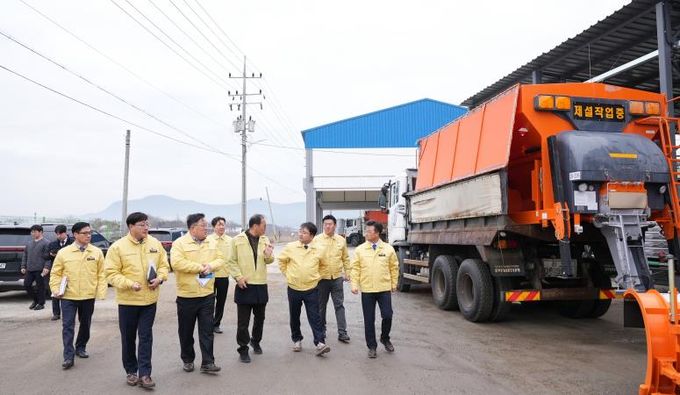 김광용 본부장은 안성시 제설 전진기지를 찾아 제설제 비축 현황과 제설 장비 가동 상태 등 겨울철 대설 대응 준비 상황을 직접 확인하고 강설 시 신속하고 체계적인 현장 대응이 이뤄질 수 있도록 철저한 대비를 당부했다.