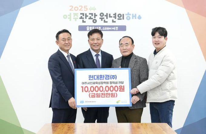 [경기탑뉴스=한진선 기자] 지난 12월 22일 여주시 장애인체육회 수석부회장이자 인재육성장학회 이사인 고광만 현대환경(주) 대표가 장학금 1천만원을 여주시 인재육성장학회에 기탁했다.