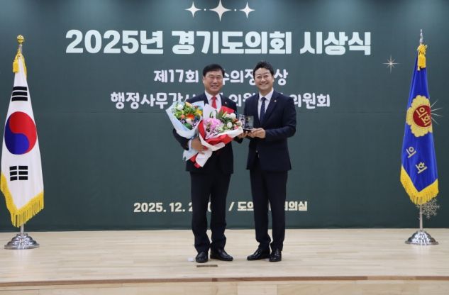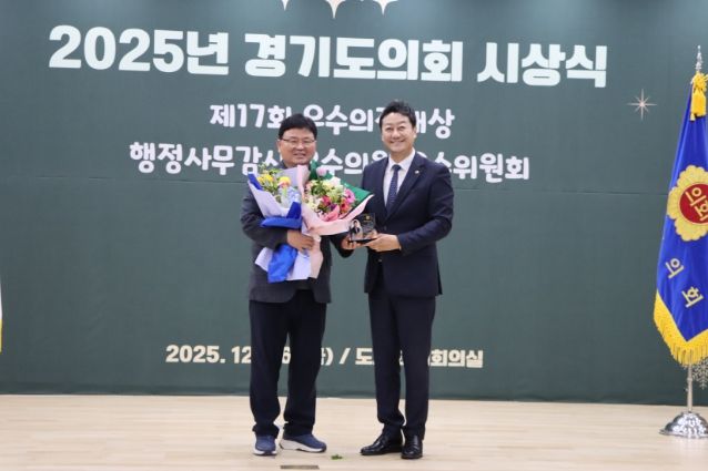 [경기탑뉴스=박봉석 기자] 경기도의회 교육기획위원회 이택수 의원(국민의힘, 고양8)과 성기황 의원(더불어민주당, 군포2)이 26일 열린 2025년 경기도의회 시상식에서 ‘2025년 행정사무감사 우수위원’으로 선정됐다.