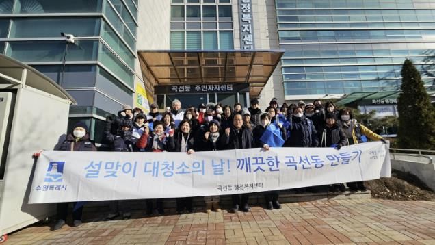 [경기탑뉴스=박봉석 기자] 권선구 곡선동은 지난 9일 이번 설연휴를 앞두고 동 단체 회원들과 동 직원들이 합동하여 설맞이 대청소를 진행했다.