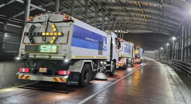 [경기탑뉴스=박봉석 기자] 수원시 영통구는 지난 11일 설 명절을 맞아 귀성객들에게 쾌적하고 안전한 도로 환경을 제공하기 위해 주요 도로 구간에 대한 노면 청소차량 합동 작업을 실시했다.