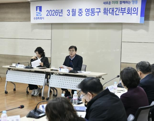 [경기탑뉴스=박봉석 기자] 수원특례시 영통구는 지난 24일, 구청 상황실에서 ‘2026년 3월 확대간부회의’를 개최하고, 구정 주요 현안을 집중 점검했다.