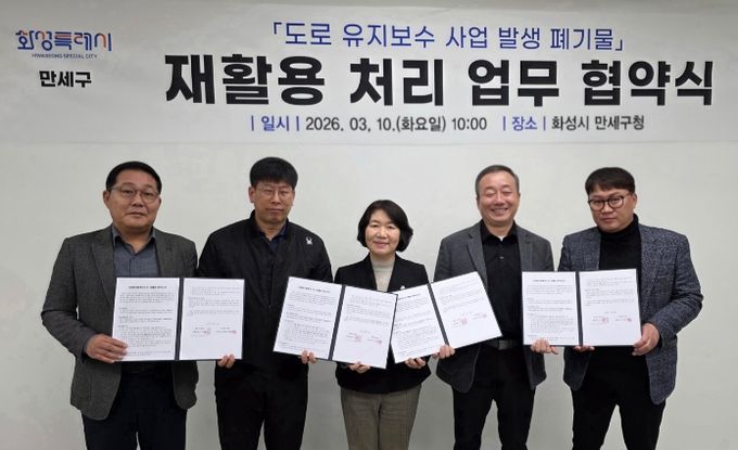 [경기탑뉴스=박봉석 기자] 화성특례시 만세구가 도로 유지보수 과정에서 발생하는 폐기물을 효율적으로 처리하고 자원 재활용을 확대하기 위해 관내 아스콘 생산 업체와 ‘폐아스콘 재활용 처리 협약’을 체결했다.