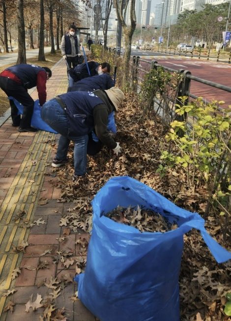 이번 환경정비는 2개 조로 나누어 법조로149번길(5블록 일대) 이면도로 및 보행로 청소, 광교호수공원길 잔여 낙엽 처리 등을 중심으로 진행됐다. 또한 잘못된 분리배출로 미수거된 폐기물을 재분리하고 무단투기 및 종량제 봉투 미사용 등 위법행위를 계도하는 활동도 진행했다.