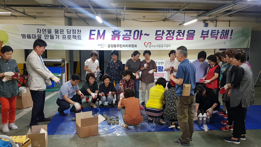 당정천은 금정동을 가로지르는 마을 하천으로 이번 EM·황토 흙공 투척 외에도 그동안 진행된 마을 주민들의 EM 세제 및 샴푸 사용 노력에 힘입어 수질이 향상될 것으로 금정동은 기대하고 있다.