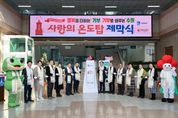 [경기탑뉴스=박봉석 기자] 수원특례시는 8일 시청 본관 로비에서 ‘사랑의 온도탑’ 제막식을 열고 ‘희망2026나눔캠페인’을 시작했다. 수원시는 ‘10억 원 모금’을 목표로 내년 1월 31일까지 사랑의 온도탑을 운영한다. 사랑의 온도탑은 0℃에서 출발해 기부금(현금·현물 포함) 1000만 원이 더해질 때마다 1℃씩 상승한다. 성금은 복지사각지대 위기가구 지원과 저장장애 가구 주거 환경 개선 등 취약계층을 돕는 데 쓰인다. 시민과 단체, 기업, 기관 등 누구나 기부에 참여할 수 있다. 제막식에는 김현수 수원특례시 제1부시장, 이재식 수원특례시의회 의장, 경기사랑의 열매 김효진 사무처장 , 지역사회보장협의체 구 대표 4명이 참석했다. 남도예찬(대표 김정복), 이만세한식부봉사회(회장 김미경), 무동건축사사무소(대표 윤정희)도 기부금(품)을 전달하며 캠페인에 참여했다. 김현수 제1부시장은 “사랑의 온도탑은 시민들의 따뜻한 나눔이 모여 완성된다”며 “희망2026나눔캠페인이 어려운 이웃에게 희망을 전하는 계기가 되길 바란다”고 말했다. 지난해 ‘희망2025나눔캠페인’에서는 총 10억 7014만 원을 모금해 목표