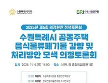 [경기탑뉴스=박봉석 기자] 수원특례시의회 환경안전위원회는 11월 6일, 오후 2시, 수원시청 별관 1층 중회의실에서 ‘공동주택 음식물류폐기물 감량 및 처리방안 모색을 위한 의정토론회’를 개최한다고 밝혔다. 음식물류폐기물, 즉 음식물쓰레기는 단순히 악취와 수거 문제를 넘어 매립이나 소각으로 인한 2차 환경오염을 일으키고 기후위기에도 악영향을 미치고 있기 때문에 이번 토론회는 음식물쓰레기 발생을 원천적으로 줄이고, 발생된 쓰레기를 보다 효율적으로 자원화하기 위한 기술 중심의 대응 방안을 고민하는 자리이다. 이를 위해 ▲음식물류폐기물 감량 및 처리 과정에서의 기술 동향 ▲타 지자체의 적용 우수 사례 ▲수원시의 음식물류폐기물 처리 현황 등을 공유하고 전문가, 시민과 함께 지속 가능한 음식물류폐기물 관리 체계를 구축하는 데 필요한 제도, 예산지원 등에 대해서도 논의할 계획이다. 환경안전위원회 채명기 위원장은 생활폐기물 처리 비용 절감과 자원 재활용 확대를 위한 정책 제안에 힘써왔으며 이번 토론회에서는 좌장으로서 지정토론을 진행할 예정이다. 채명기 위원장은“음식물쓰레기는 단순한 폐기물이 아니라, 기술과 정책의