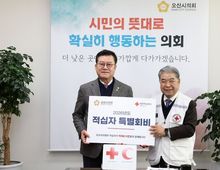[경기탑뉴스=박봉석 기자] 오산시의회는 30일 의장실에서 대한적십자사 경기도지사에 적십자 특별회비 100만 원을 전달했다고 밝혔다. 이날 전달식에는 오산시의회 이상복 의장과 대한적십자사 경기도지사 이재정 회장과 이영재 대의원, 대한적십자사봉사회 오산지구협의회 김희자 회장을 비롯한 관계자들이 참석했다. 이상복 의장은 “적십자는 가장 어려운 순간마다 가장 먼저 현장으로 향해 온 우리 사회의 버팀목”이라며 “이번 특별회비는 오산시의회가 시민의 뜻을 모아 이웃의 곁을 지키겠다는 연대의 마음을 전하는 것”이라고 말했다. 이어 “오산시의회도 시민사회와 함께 손잡고 도움이 필요한 분들께 온기가 제대로 닿도록 역할을 다하겠다”고 밝혔다. 이재정 대한적십자사 경기도지사 회장은 감사의 뜻과 함께 오산시의 성과를 구체적인 수치로 전했다. 이 회장은 “오산시는 2025년 적십자 회비 모금에서 8억 9천 8백여만 원을 모금하며 목표 대비 114%를 달성했다. 이는 시민 한 분 한 분의 참여와 신뢰가 만들어 낸 값진 결과”라고 말했다. 이어 “올해 오산에서는 재난취약계층, 긴급지원, 결연지원, 맞춤형 지원 등을