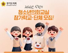 [경기탑뉴스=박봉석 기자] 경기도의회는 도내 초·중·고등학생과 학교 밖 청소년들을 대상으로 2026년 상반기 '청소년의회교실'에 참여할 학교 및 단체를 모집한다. 신청 기간은 3월 3일부터 3월 17일까지 15일간이며, 운영은 4월부터 7월까지 총 30회에 걸쳐 진행된다. 모집 대상은 초등학교 5~6학년, 중·고등학생 및 동일 연령대 학교 밖 청소년으로, 회차당 참여 인원은 34명 이내다. 개인 접수는 불가하며, 학교 또는 단체 단위로 신청해야 한다. 청소년의회교실은 △의회 소개 △모의의회 체험 △OX퀴즈 △수료식 △의회 견학 등 다양한 프로그램으로 구성된다. 학생들은 실제 의사 진행 과정을 체험하며 지방의회의 기능과 역할을 이해하고, 민주적 의사결정 과정을 직접 경험하게 된다. 참가 신청은 경기도의회 ‘어린이의회’ 누리집을 통해 가능하며, 참가신청서를 제출해야 한다. 자세한 사항은 경기도의회 디지털의사과 의사팀(031-8008-7204)으로 문의하면 된다.