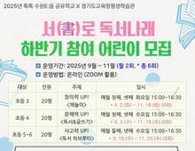 [경기탑뉴스=박봉석 기자] 경기도교육청평생학습관이 수원교육지원청과 함께 어린이 독서 습관 형성과 사고력 향상을 위하여 초등학교 3~6학년을 대상으로‘서(書)로 독서나래’를 운영한다. 9월부터 11월까지 온라인으로 운영되는 ‘서(書)로 독서나래’는 다양한 독서 활동을 통해 독서의 흥미를 높이고 또래 친구들과 생각을 공유하며 공감 능력, 비판적 사고력 등을 키울 수 있는 프로그램이다. 프로그램은 수강 희망 프로그램 수요 조사 결과를 바탕으로 ▲창의력 업(UP) 책놀이(3학년) ▲문해력 업(UP) 독서&글쓰기(4학년) ▲사고력 업(UP) 독서 하브루타(5~6학년)로 구성되어 있다. 류영신 경기도교육청평생학습관장은 “학생들이 독서를 통해 다양한 생각을 접하고 스스로 사고의 폭을 넓힐 수 있는 기회가 되길 바란다”며 “앞으로도 학생들이 즐겁게 참여할 수 있는 독서프로그램을 확대하여 자기주도적 학습 습관 형성과 독서문화 확산에 힘쓰겠다”고 말했다.