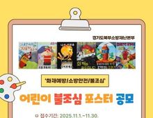 [경기탑뉴스=박봉석 기자] 경기도북부소방재난본부는 오는 11월 1일부터 30일까지 경기북부 지역 어린이를 대상으로 ‘2025년 어린이 불조심 포스터 공모전’을 연다. 이번 공모전은 어린이들이 직접 손으로 그리는 포스터를 통해 화재 예방의 중요성과 안전의식을 자연스럽게 배우고, 나아가 가정과 지역사회로 안전 문화가 확산되도록 하기 위해 마련됐다. 공모 대상은 경기북부 지역에 거주하는 만 6세부터 12세까지의 어린이로, 저학년(6~8세)과 고학년(9~12세) 부문으로 나뉘며, 포스터 형식의 손그림을 제출하면 된다. 접수는 관할 소방서를 통해 방문 또는 우편으로 이뤄지며, 1차 심사를 거쳐 추천된 작품은 12월 중 최종 심사를 통해 수상작으로 선정된다. 수상자에게는 경기도지사 상장이 수여된다 강대훈 경기도북부소방재난본부장은 “공모전에 참여하는 과정 자체가 아이들에게 화재 예방의 중요성을 심어주는 뜻깊은 배움이 된다”며 “많은 어린이들이 자신의 재능을 발휘해 소중한 메시지를 전하길 기대한다”고 말했다. [뉴스출처 : 경기도청]