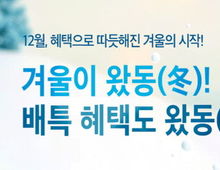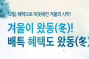 [경기탑뉴스=박봉석 기자] 경기도와 경기도주식회사가 공동 운영하는 경기도 공공배달앱 배달특급이 겨울을 맞아 12월 한 달간 ‘겨울이왔동(冬)’ 소비자 할인 프로모션을 진행한다. ‘겨울이왔동(冬)’ 소비자 할인 이벤트는 ‘통 큰 세일’ 프로모션 종료 등으로 아쉬움이 남는 소비자들의 편익을 증대하기 위해 마련했다. 배달 특급 전체 회원, 전체 서비스 지역을 대상으로 1만2천원 주문에 사용가능한 3천원 할인 쿠폰을 예산 소진시까지 1일 1인 1회 지급한다. 한편 배달특급의 모든 이벤트는 해당 상단 배너 기능을 통해 확인 가능하며, 지역에 따라 할인 조건과 금액이 달라질 수 있어 사전 확인이 필요하다. [뉴스출처 : 경기도청]