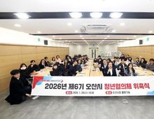 [경기탑뉴스=박봉석 기자] 오산시는 지난 28일 오산시청 물향기실에서 제6기 오산시 청년협의체 위원 41명에 대한 위촉식을 개최했다고 밝혔다. 오산시 청년협의체는 청년의 시정 참여를 확대하고 청년정책 발굴과 홍보를 강화하기 위해 운영되는 청년 참여기구로, 19세부터 39세까지의 청년들로 구성돼 자율적인 활동 계획에 따라 운영된다. 이날 행사는 1부 위촉식과 2부 활동 안내 순으로 진행됐다. 위촉식에서는 위촉장 수여와 선언문 낭독을 통해 청년협의체 위원으로서의 역할과 책임을 공유했으며, 이어진 활동 안내 시간에는 제5기 활동 성과를 소개하고 2026년 제6기 활동 일정과 운영 방향을 안내했다. 또한 분과별 소통의 시간을 마련해 향후 활동 방향을 논의하고 운영 전반에 대한 질의응답을 진행했다. 제6기 청년협의체는 ▲교류기획 ▲정책소통 ▲홍보취재 등 3개 분과로 나뉘어 관내 청년 네트워킹 프로그램 기획, 청년정책 모니터링 및 의견 수렴, 청년정책과 활동 홍보 등의 역할을 수행할 예정이다. 협의체 위원에게는 회의 수당 지급과 함께 활동에 필요한 행·재정적 지원이 제공되며, 우수 활동 위원에게는 청년의 날 기념 유공 표