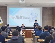 [경기탑뉴스=박봉석 기자] 평택시 북부지역 기관·단체협의회가 지난 23일 송탄출장소 대회의실에서 임시총회 및 송년회를 개최했다. 이날 행사는 역대 회장들을 비롯한 북부기관·단체협의회 회원, 도·시의원 등 30여 명이 참석했으며, 시정 홍보, 기부금 전달식, 차기 임원선출 등의 순으로 진행됐다. 이정수 회장은 䶩년 연말을 맞아 북부지역 소외된 이웃들에게 도움을 주고자 기부금을 준비했으며, 이웃들이 따뜻한 겨울을 보낼 수 있도록 보탬이 됐으면 좋겠다”라고 말했다. 또한 이날은 제7대 회장 김종식(서정동 주민자치회장) 신임회장이 회원들의 많은 지지를 받아 선출됐다. 김신회 송탄출장소장은 “어려운 상황에서도 따뜻한 나눔을 실천하신 북부기관·단체협의회에 감사드린다”며, “앞으로도 새 임원진과 함께 북부지역 내 다양한 현안 및 의견을 공유하며 북부지역이 더욱 발전할 수 있도록 돕겠다”고 말했다.
