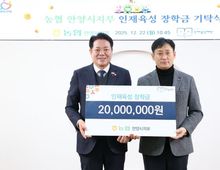 [경기탑뉴스=박봉석 기자] 안양시 인재육성재단이 지난 22일 농협 안양시지부로부터 인재육성을 위한 장학금 2천만 원을 기탁받았다고 23일 밝혔다. 농협 안양시지부는 금융 본연의 역할을 넘어 사회공헌과 교육지원 활동을 지속적으로 실천하며 지역사회 발전에 앞장서고 있는 금융기관이다. 특히 안양시 인재육성재단에는 2011년부터 현재까지 총 4억2천8백만 원의 장학금을 기탁하며 안양 지역 인재 양성을 위한 든든한 동반자로 함께 해왔다. 이번에 농협 안양시지부에서 기탁한 2천만원은 건전한 금융 습관을 기를 수 있는 금융 장학생들을 위한 장학금으로, 2026년 지정장학생(농협 미래 장학생)을 선발하여 지원할 예정이다. 이상하 지부장은 “함께 미래를 설계해 나갈 수 있는 금융 인재들을 발굴하여 사회 발전에 보탬이 되고자 노력하겠다”고 말했다. 최대호 이사장은 “농협 안양시지부의 꾸준한 선행에 깊이 감사드린다. 기탁하신 장학금은 안양시 학생들에게 큰 희망이 될 수 있도록 소중히 사용하겠다”고 말했다.