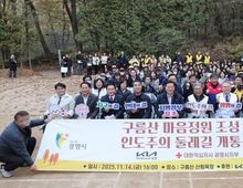 [경기탑뉴스=박봉석 기자] 광명시에 민관 힘을 합쳐 ESG(환경·사회·지배구조) 가치를 실현한 정원이 문을 열었다. 시는 14일 오후 구름산 산림욕장 입구에서 ‘기아와 함께하는 마음정원’ 준공식을 개최했다. 이번에 개방한 마음정원은 광명시 최초 민관협력 정원으로, 어르신들의 인지건강과 정신건강을 함께 돌볼 수 있는 치유형 정원이다. 구름산 산림욕장 입구인 하안동 산 141-3 일원에 350㎡ 규모로 조성했다. 이번 사업은 민관협력으로 지역사회 문제를 해결하기 위해 만든 ‘광명 ESG 액션팀’ 소속인 광명시, 대한적십자사 경기도지사(회장 이재정), 기아 오토랜드 광명(공장장 강동원)이 치매, 우울감 등 어르신 정신건강 문제 개선을 위해 힘을 모았다는 데 의미가 있다. 사회적·환경적 가치를 실현한 ESG 협력 모범사례를 보여준다. 기아 오토랜드 광명은 정원 조성 사업비 1억 원을 대한적십자사에 기부했고, 대한적십자사는 정원 조성 공사를 맡았다. 광명시는 부지와 행정적 지원을 제공해 사업이 원활히 추진될 수 있도록 뒷받침했다. 정원은 ▲사계절의 변화를 따라 걷는 산책형 공간인 ‘기억을 걷는