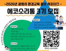 [경기탑뉴스=박봉석 기자] 광명시가 오는 16일까지 시민의 시각에서 지역 환경교육 현안을 생생하게 전달할 홍보 서포터즈 ‘에코소리통 3기’를 모집한다. 이번 모집은 환경교육에 대한 시민의 관심을 제고하고 온라인 콘텐츠를 통한 소통 창구를 확대하기 위해 마련했다. 모집 인원은 총 7명으로, 환경교육과 지역 홍보에 관심이 있고 분기별 1회 이상 오프라인 모임 참석이 가능한 광명시민이라면 누구나 지원할 수 있다. 최종 선발된 서포터즈는 오는 2월부터 12월까지 약 11개월간 활동하게 된다. 주요 활동 내용은 ▲월별 환경 기념일 및 지역 환경 행사 카드뉴스 제작 ▲계절별(3, 6, 9, 12월) 환경 뉴스레터 기획 및 제작 등이다. 광명시는 서포터즈의 원활한 콘텐츠 제작을 위해 활동 기간 중 디자인 툴 ‘캔바(Canva)’ 유료 버전 계정을 지원한다. 또한 캔바 활용법과 환경·디자인 결합 콘텐츠 제작법 등 전문 역량 강화 교육을 제공하며, 매월 소정의 원고료 지급과 활동 종료 후 위촉장 및 활동 증명서를 발급할 예정이다. 참여 희망자는 1월 16일까지 광명시청 홈페이지(gm.go.