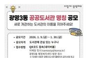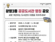 [경기탑뉴스=박봉석 기자] 광명시가 광명3동 새 도서관의 이름을 지어줄 주인공을 찾는다. 시는 올해 10월 개관 예정인 ‘광명3동 공공도서관’ 명칭 공모를 9일부터 30일까지 22일간 진행한다고 9일 밝혔다. 광명3동 공공도서관은 광명3동 공공복합청사(광명동 104-9) 내 지상 5~6층에 연면적 1천600㎡ 규모로 조성ᅟᅡᆫ다. 어린이·종합 자료실을 비롯해 실감 놀이터, 어린이 창작공간, 강의실, 동아리실 등 전 세대가 함께 이용할 수 있는 복합문화공간으로 운영할 예정이다. 이번 명칭 공모는 도서관이 시민의 일상과 가장 가까운 생활 문화공간으로 자리 잡을 수 있도록, 공간의 성격과 가치를 잘 담아내면서도 모두에게 친숙한 이름을 찾기 위해 마련했다. 명칭의 적합성, 창의성, 대중성 등을 종합적으로 평가해 최우수상 1건(10만 원), 우수상 1건(7만 원), 장려상 1건(5만 원)을 선정하고, 온누리상품권으로 시상할 계획이다. 선정 결과는 오는 2월 중 광명시도서관 누리집에서 공개한다. 명칭 공모는 도서관에 관심 있는 누구나 참여할 수 있다. 온라인 양식을 작성해 제출하거나, 광명3동 행