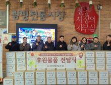 [경기탑뉴스=박봉석 기자] 광명시장상점가진흥사업협동조합이 설 명절을 앞둔 지난 9일 관내 소외된 이웃을 위한 ‘설맞이 이웃사랑 떡만둣국 세트 나눔 행사’를 개최했다. 이번 나눔은 지난해 12월 시장 내 고객 쉼터에 설치된 크리스마스트리에 후원 금액과 이름을 적은 엽서를 부착하는 ‘나눔 엽서 달기’ 캠페인으로 마련했다. 경기 침체로 어려운 여건 속에서도 시장 상인 63개 점포가 자발적으로 동참하여 총 550만 원의 성금을 모았다. 광명전통시장은 모금액 중 일부를 광명희망나기운동본부에 지정 기탁해 복지 사각지대 지원에 앞장서는 한편, 정성껏 준비한 ‘떡만둣국 선물 세트’ 130박스를 제작해 따뜻한 온정을 나누었다. 준비된 선물 세트는 지역 내 촘촘한 복지망을 통해 골고루 전달했다. ▲광명전통시장 여성회 봉사 대상 어르신 30가구를 시작으로 ▲광명3동 행정복지센터(30박스) ▲광명종합사회복지관(30박스)에 전달했으며, 미래 세대인 아이들을 위해 ▲광명다솜지역아동센터와 ▲어벤저스지역아동센터에도 전해졌다. 광명전통시장의 나눔은 지난 2018년 여성회가 홀몸 어르신 등 125가구에 생필품을 전달하