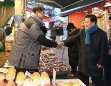 [경기탑뉴스=박봉석 기자] 박승원 광명시장이 10일 설 명절을 앞두고 광명전통시장을 방문해 물가를 점검하고 현장 목소리를 청취했다. 박 시장은 이날 전통시장 점포를 둘러보며 사과, 배 등 주요 성수품 가격 동향을 꼼꼼히 살폈다. 특히 광명사랑화폐로 직접 장을 보며 시민들의 장바구니 물가 부담을 파악하고, 상인들이 현장에서 느끼는 애로사항을 경청했다. 박 시장은 “전통시장과 이웃상권은 지역 경제의 뿌리인 만큼 상인과 시민이 상생하는 환경을 조성하기 위해 최선을 다하겠다”며 “설을 맞아 시장을 찾는 시민들이 장바구니 부담을 덜고 따뜻한 명절을 보낼 수 있도록 물가안정에도 노력하겠다”고 말했다. 한편, 광명시는 지난 2일부터 2주간을 물가안정 특별대책기간으로 지정해 대형 상점, 전통시장, 기업형 슈퍼마켓(SSM), 골목슈퍼 등에서 16개 주요 성수품 가격 변동 상황을 점검하고 있다. 주요 성수품 가격과 물가동향은 시 누리집에서 확인할 수 있다.