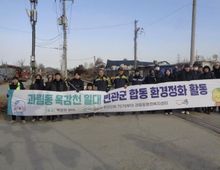 [경기탑뉴스=박봉석 기자] 시흥시 과림동 행정복지센터는 지난 12월 3일 관내에 주둔하는 제7578부대 및 동 관계단체와 합동으로 목감천 일대 환경정화 활동을 진행했다. 갑작스럽게 추워진 날씨에도 불구하고 이날 환경정화 활동에는 과림동 행정복지센터 직원들과 관계단체원 그리고 7578부대원 등 110여 명이 참여해 목감천 주변 수자원로 군사철도지역 약 3km 구간의 도로변에 적치된 쓰레기를 집중 수거했다. 이와 함께 참가자들은 정화 활동과 함께 쓰레기 무단투기 근절 캠페인도 병행하며 깨끗한 생활환경 조성에 힘을 보탰다. 특히, 목감천 주변 수자원로는 불법적으로 난립한 창고ㆍ고물상ㆍ야적장 등이 밀집해 불법 폐기물 투기가 자주 발생하는 지역으로, 시흥시 내 대표적인 쓰레기 무단투기 취약지로 꼽힌다. 이번 환경정화 활동은 2021년 목감천 환경 개선을 위한 관계기관 합동회의를 계기로 시작되어, 2022년 상반기부터 올해 하반기까지 총 7회 진행됐다. 과림동 주민자치 관계자는 “정화활동에 적극 협조해 준 7578부대와 과림동 행정복지센터에 감사드린다”라며 “앞으로도 주민이 주도해 깨끗한 목감천과 과림동을 만