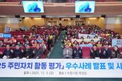 [경기탑뉴스=박봉석 기자] ‘2025년 수원시 주민자치 활동평가’에서 율천동 주민자치회가 대상을 차지했다. 수원시가 5일 시청 대강당에서 개최한 ‘2025년 주민자치 활동평가 우수사례 발표회’에서 ‘주민이 직접 가꾼 ‘새빛밤밭’ 이야기’를 발표한 율천동이 대상을 받았다. 금곡동(진짜 주민자치가 나타났다 IN 금곡동), 고등동(기억을 잇고, 사람을 잇고 내일을 잇다), 광교2동(주민과 자연이 함께하는 광교2동 주민자치회)가 최우수상으로 선정됐다. 연무동·권선1동·화서2동·망포2동은 우수상, 정자1동·권선2동·행궁동·매탄2동은 장려상을 받았다. 대상을 받은 율천동은 ▲우리마을 제대로 알기 ▲다양한 주체가 함께 완성하는 율천 ▲환경과 교육으로 미래를 준비하는 마을 등을 주제로 발표했다. 이날 발표회에서는 지난 10월 1~22일 구별 자체 평가를 거쳐 우수 동으로 선정된 12개 동(구별 3개 동)이 우수사례를 발표했다. 내·외부 주민자치 분야 전문가가 심사했다. 정량 평가(50%), 발표 점수(50%)를 합산해 순위를 결정했다. 시상금은 대상 220만 원, 최우수상 120만 원,