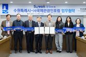 [경기탑뉴스=박봉석 기자] 수원특례시와 (사)국제관광인포럼(TITF)이 ‘글로벌 관광도시 수원’을 만들어 가기 위해 협력한다. 수원시와 (사)국제관광인포럼은 2일 시청 상황실에서 업무협약을 체결하고, ‘제5회 세계관광산업콘퍼런스 개최(6월 5일~6일)’와 ‘2026~2027 수원 방문의 해’의 성공적인 추진을 위해 협력하기로 했다. 협약식에는 이재준 수원특례시장과 국제관광인포럼 김정배 회장, 신연성 부회장, 금기형 사무총장, 신중목 후원회장, 연정아 이사 등이 참석했다. 양 기관은 협약에 따라 ‘제5회 세계관광산업콘퍼런스 공동 개최·운영’, ‘수원시 관광자원 홍보·국제 관광시장 확대 등을 협력하기로 했다. 수원시는 이번 협약을 계기로 국제 관광 네트워크를 확대하고, 수원의 관광자원과 도시 경쟁력을 세계에 알려 ‘1500만 관광객 시대’를 열 계획이다. (사)국제관광인포럼은 2013년 문화체육관광부 인가를 받아 설립된 관광 분야 전문 단체다. 국내·외 관광 전문인 간 교류 협력을 바탕으로 세계 관광산업 발전과 지속가능관광 육성을 지원하고 있다. 김정배 국제관광인포럼 회장은 “