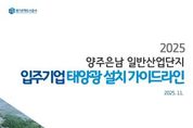[경기탑뉴스=박봉석 기자] 경기주택도시공사(GH)는 27일, 양주은남 일반산업단지를 ‘경기북부 RE100 실현 산업단지’로 조성하기 위한 일환으로, 국내 최초로 산업단지 입주기업 대상 ‘태양광 설치 가이드라인’을 제작했다고 밝혔다. 이번 가이드라인은 GH가 수개월에 걸쳐 양주시, 경기환경에너지진흥원, 입주기업, 발전사업자 등 전문가 자문 및 관계기관 협의를 거쳐 완성한 입주기업 맞춤형 실무 지침서다. 이는 산업단지 단위에서 재생에너지 도입 지원체계를 마련한 국내 첫 사례다. 가이드라인은 다양한 태양광 사업모델 △발전사업 인허가 절차 △지붕 등 구조별 설치 기준 △안전·유지관리 방안 등 입주기업의 RE100 달성을 위한 실무 전 과정을 단계별로 구성해, 태양광 설치가 처음인 기업도 쉽게 이해하고 적용할 수 있도록 체계적으로 정리됐다. 특히, 모든 필지에 대해 태양광 조도 시뮬레이션을 실시, 예상 발전량·설치비·운영비 등을 사전 분석해 입지별 개별사업성까지 안내한 점이 큰 특징이다. 이를 통해 기업이 자발적이고 합리적인 재생에너지 도입 결정을 내릴 수 있도록 실질적인 지원 기반을 제공한다. 이와 함께