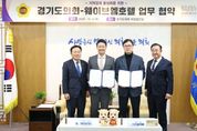 [경기탑뉴스=박봉석 기자] 경기도의회는 4일 오후 의장 접견실에서 시흥 소재 웨이브엠 호텔(대표 천수봉)과 ‘도의원 및 직원 복지 증진과 지역 내 관광·숙박업 활성화를 위한 업무협약’을 체결했다. 이번 협약은 도의회 구성원의 복지 수준을 높이는 동시에, 지역 내 숙박·관광 산업의 경쟁력 강화와 상생 협력 기반을 마련하기 위해 추진됐다. 업무협약식에는 김진경 의장(더민주·시흥3)과 김종배 의원, 임채호 의회사무처장 및 웨이브엠 호텔 대표 등이 참석했다. 이날 양 기관은 ▲객실 및 부대업장 이용 시 할인 제공(객실 20% 할인 등) ▲조식 할인 및 객실 이용 시 1인 조식 무료 제공 ▲행사 개최 등 다양한 분야에서의 상호 협력 추진 등에 대한 업무협약을 체결했다. 김진경 의장은 “이번 협약을 통해 도의원과 직원들은 좋은 시설을 편리하게 이용할 수 있게 되고, 동시에 지역 관광 및 숙박 산업에도 의미 있는 보탬이 될 것”이라며 “경기도의회와 지역 기업이 서로 신뢰를 쌓고 협력의 폭을 넓힌다는 점에서 협약의 의미가 크다”라고 기대했다. 이어 “오늘의 협약이 단순한 혜택 제공을 넘어 지역 경제